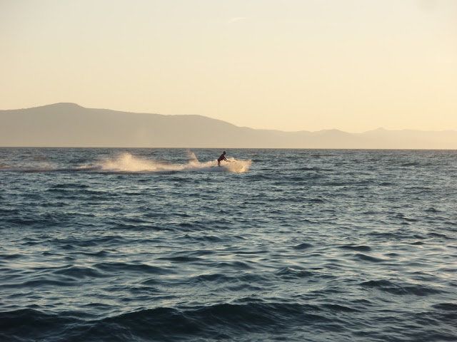 Wieczorem na Przinie życie wakacyjne trwa w najlepsze. Nadal ciepło, 22, czasem nawet 28 stopni (niektórym chłodno), niekiedy lekka bryza wszystko to zachęca do pozostania po zmroku. Tym bardziej, że piaszczysta plaża i ciepła woda nadal zachęca do kąpieli (byle na trzeźwo!). I tak, gdy część turystów wraca do swoich "apartmanów" inni przyjeżdżają na dyskotekę oraz grilla.Ze względu na oddalenie od miejskich świateł, nocne niebo pełne jest gwiazd, znakomicie widać Drogę Mleczną, nawet ulotna (elusive, faint) galaktyka M31, znana lepiej jako mgławica Andromedy, widoczna jest gołym okiem (choć może nie w tak spektakularny sposób jak na zdjęciu w serwisie APOD>>) a stary dobrze znany Księżyc wygląda w tej scenerii niezwykle tajemniczo i urokliwie. Masz lornetkę? Bez trudu dostrzeżesz galileuszowe księżyce Jowisza: Ganimedesa, Europę, Io oraz Kallisto więcej na Wikipedii>>.