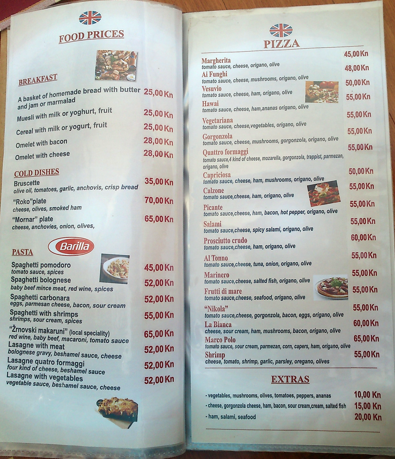 | Cennik w jednej z pizzerii |