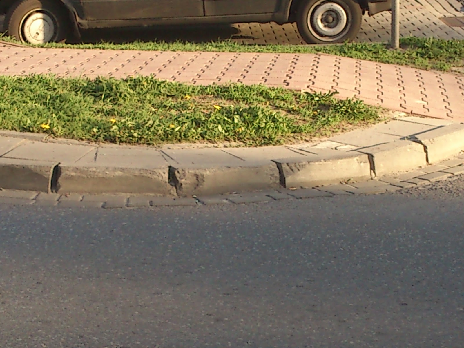 But curb here is made in unexpected place, see white ellipse. Imagine, you are driving home late in the night, it's heavy raining, you ride along the right side of the road, and suddenly ZONK! This [..] curb...