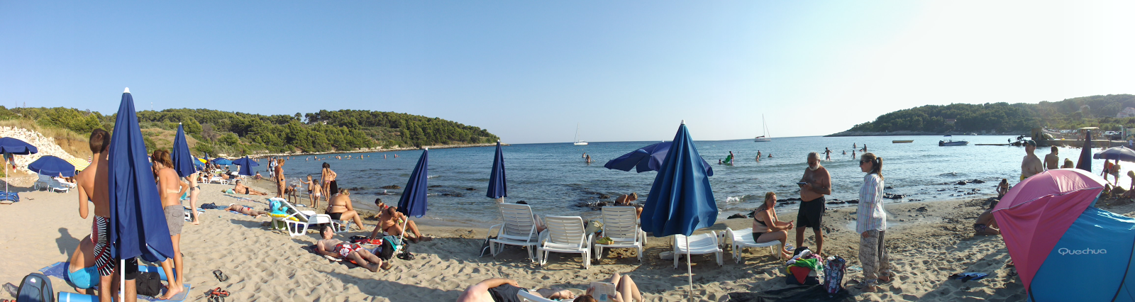 Jednak na Korčuli jest kilka pięknych plaż z naturalnym piaskiem. Trzeba tu wymienić przynajmniej Bilin Żal i Przinę niedaleko Lumbardy oraz plażę w zatoce Pupnatska Luka, położonej niedaleko miejscowości Pupnat, gdzieś w połowie wyspy. Dostęp do tej ostatniej możliwy jest albo pieszo (dla alpinistów), samochodem (dla kaskaderów) oraz rowerem (dla miłośników kolarstwa górskiego). Na poważnie, samochodem można tam dojechać od drogi 118 z dwóch stron. Moim zdaniem, lepszy dojazd jest od strony Vela Luki, drogą gruntową, kamienistą, ale w miarę szeroką i umiarkowanie nachyloną, poza jednym problematycznym zakrętem (uwaga!). Droga od drugiej strony jest wprawdzie asfaltowa (jak oni to robią, że im asfalt przy 50 stopniach Celsjusza nie spływa?!) ale wąska, faktycznie na jedno auto, prowadzi serpentynami nad przepaścią i to bez żadnych zabezpieczeń! Super!