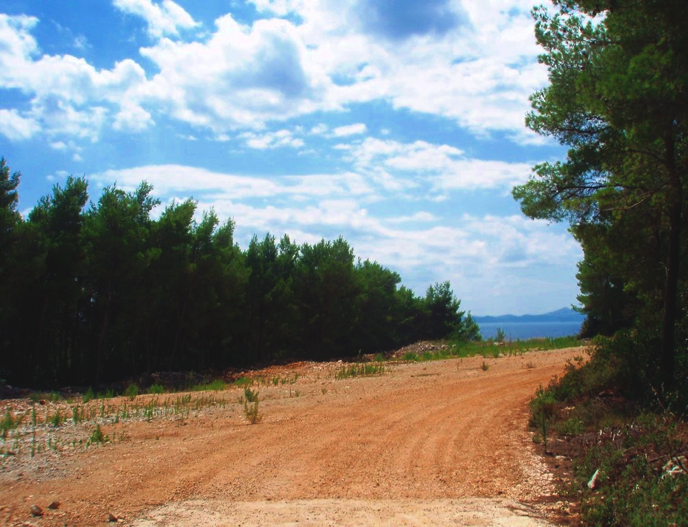 | Gruntowa droga na Punatską Lukę, okolice wjazdu z drogi 118 od strony Vela Luki/Cary. |